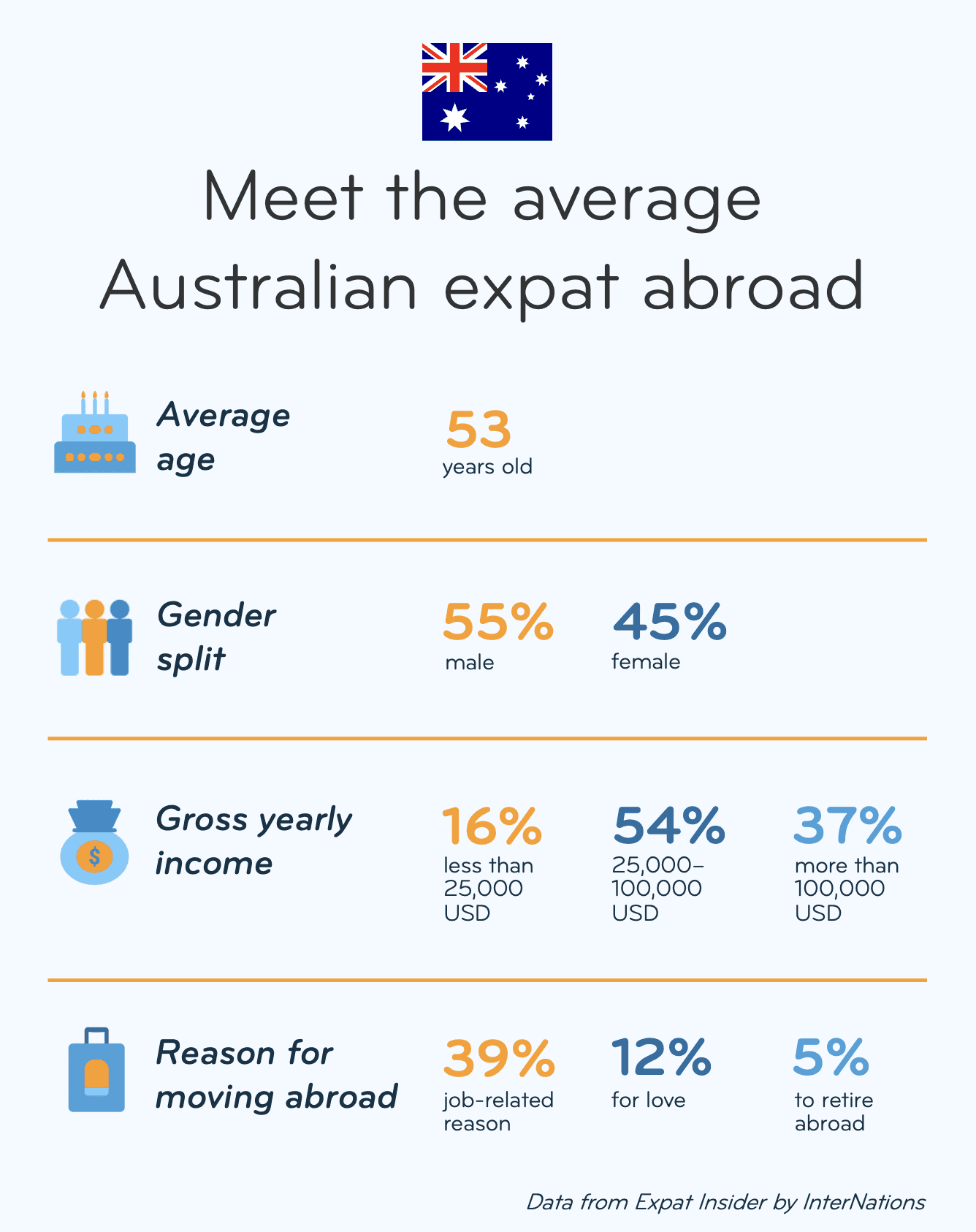 Every year, we publish one of the biggest global surveys among expats — asking them about various aspects of their life, from work to leisure. Learn what motivated our Australian members to move abroad, what keeps them there, and what they struggle with or miss about home.