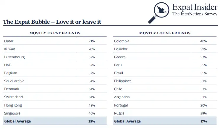 And yet, despite these differences, these countries are all listed among those where expats have the least local friends.