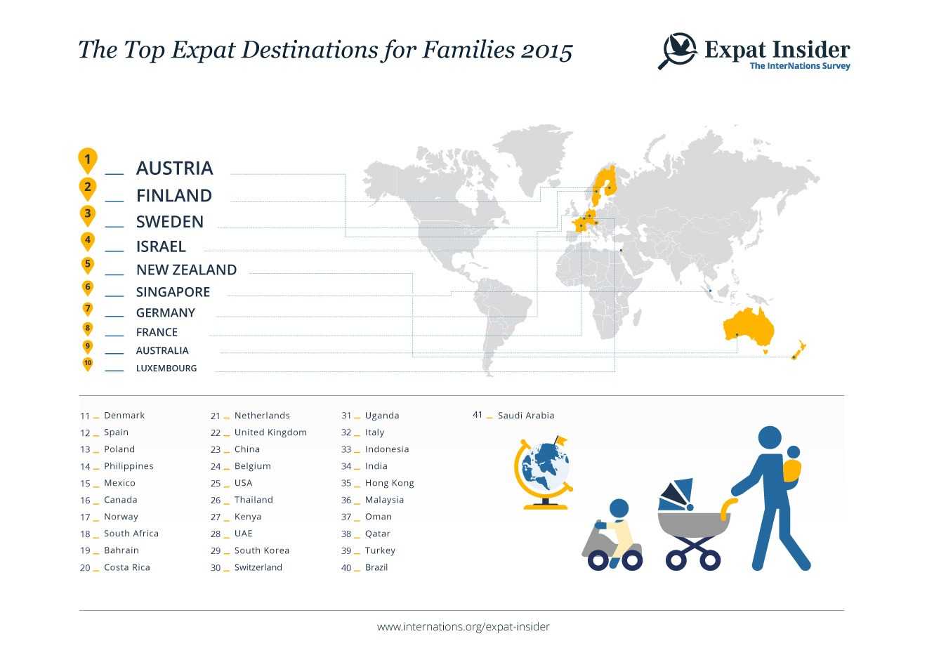 Are you planning on raising children abroad? Then we have the right infographic just for you. Our Family Life Index ranks over 40 countries around the globe according to a wide range of factors that are especially important to expat families: from availability of childcare to its affordability, from quality of education to children’s health and safety.