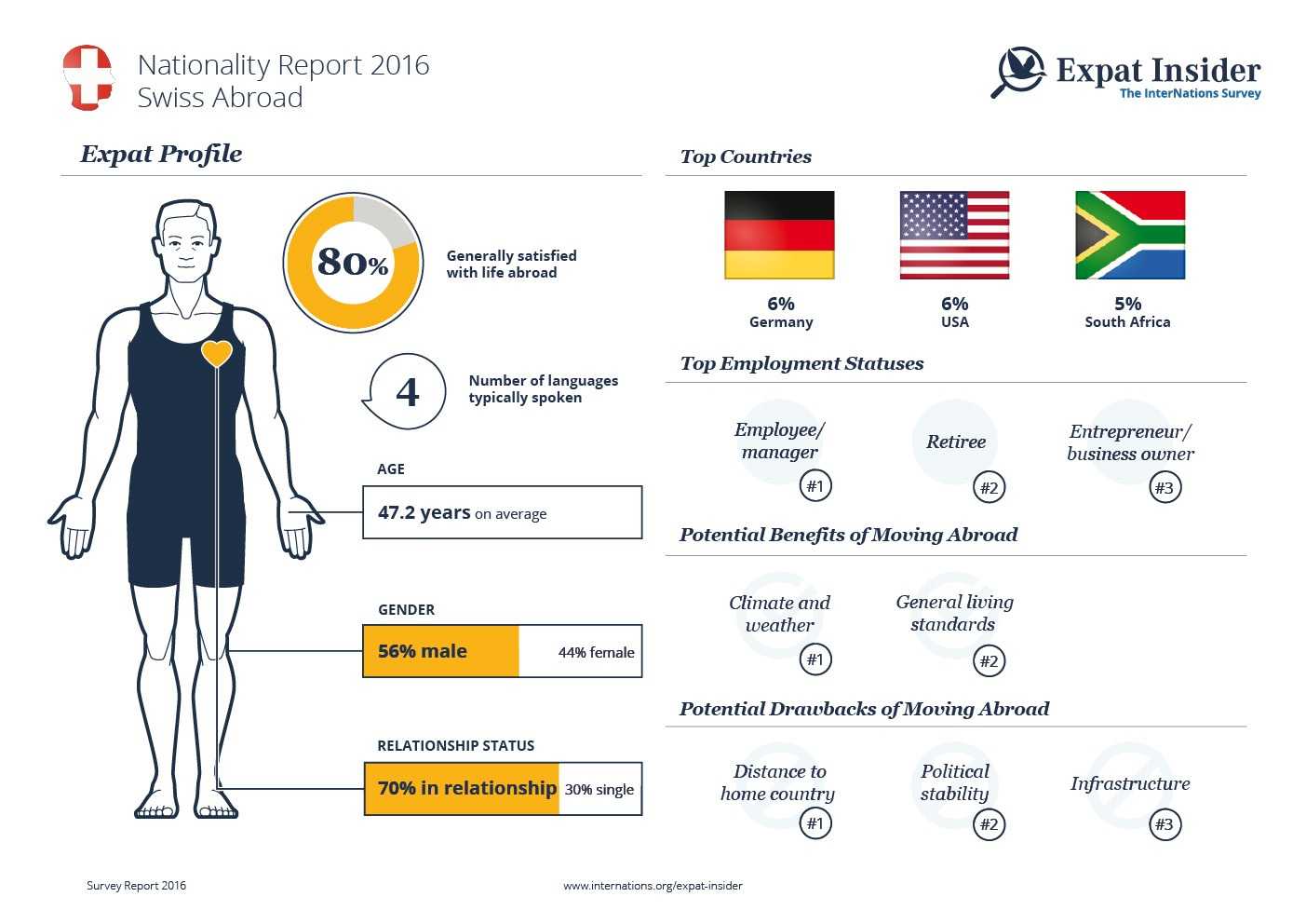 The typical Swiss expat has lived in many countries, speaks multiple languages, and often has a lower income abroad.