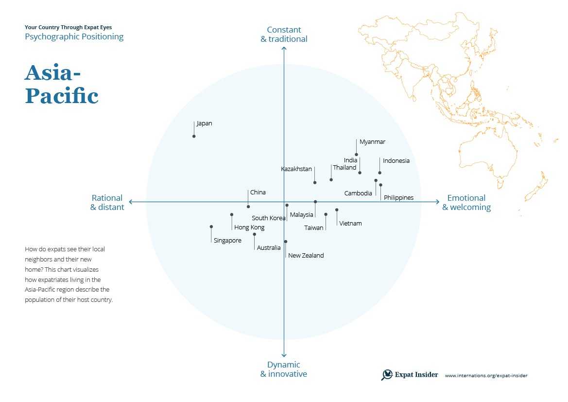How do expats see their local neighbors and their new home? This chart visualizes how expatriates living in the Asia-Pacific region describe the population of their host country.