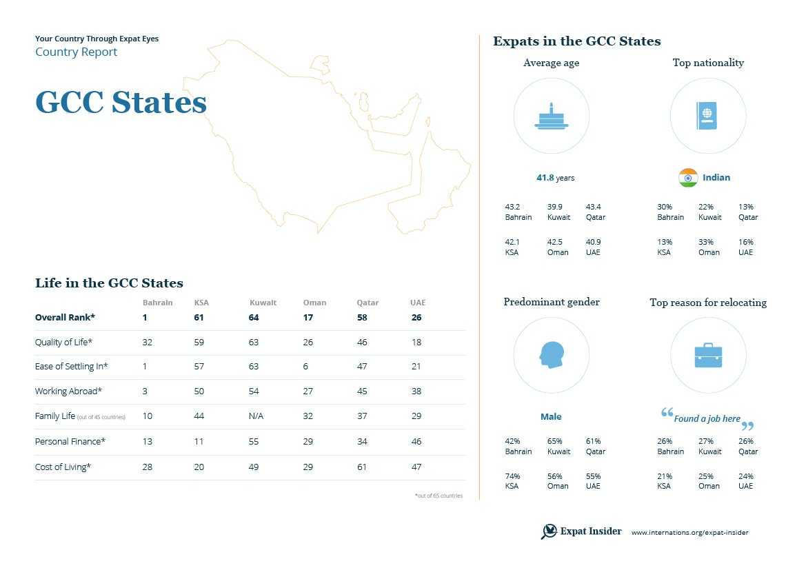 Kuwaitis also come last for friendliness, while their Bahraini neighbors offer a considerably warmer welcome. Bahrain comes top in the Ease of Settling In Index and is the highest-ranking Gulf state for making expats feel welcome.