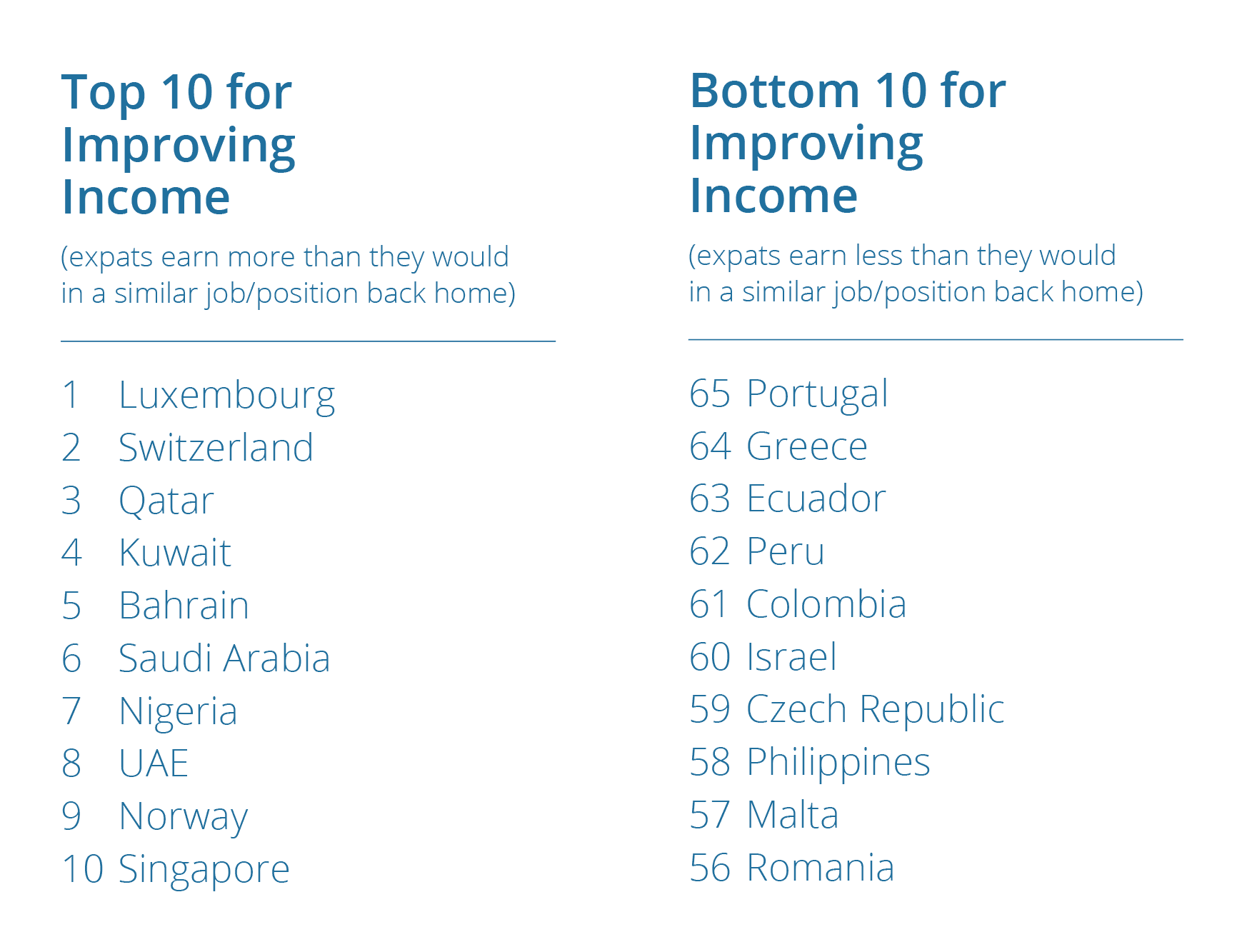 Climbing up the ranking is one of the biggest losers from the 2016 ranking, Nigeria: it has moved 20 places to take the 12th spot in the Personal Finance Index. The number of expats who have a lot more than they need has risen from 15% to 21%, and almost a third (31%) give their personal finances the best rating in 2017, compared to 19% in 2016.