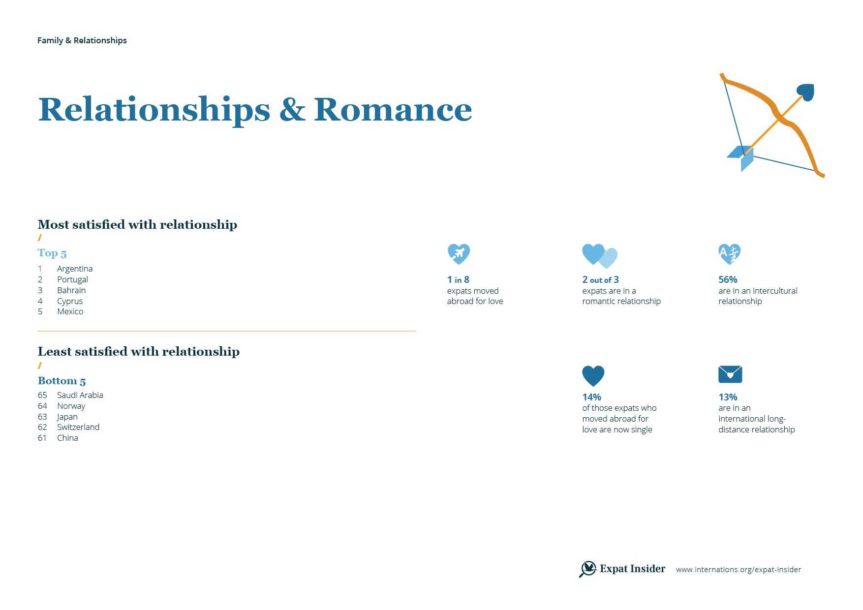 Find out where expats are the most, and least, satisfied with their relationships and discover how international romance can be in the following infographic.