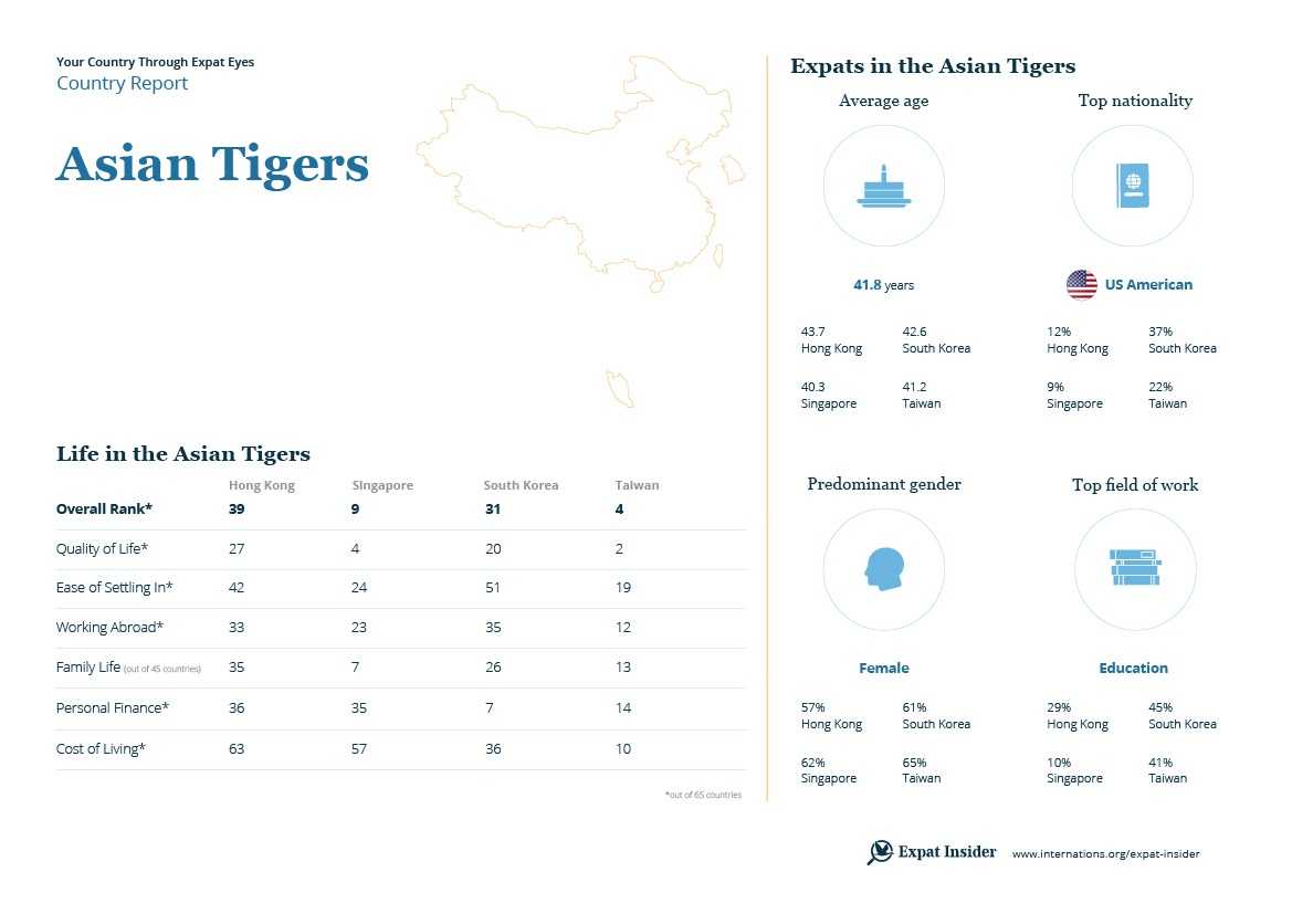 Results for Taiwan and South Korea are generally less striking: they rank 13th and 26th respectively in the Family Life Index, compared to Singapore’s 7th and Hong Kong’s 35th rank out of 45 destinations.