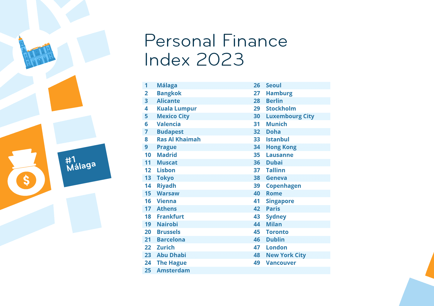 Vancouver can once again be found at the bottom of the Personal Finance Index (49th), just like in 2022. Close to half the expats there (49%) find that their disposable household income does not afford them a comfortable life (vs. 27% globally), and a staggering 84% view the local cost of living negatively (vs. 35% globally). It’s a good thing then that not a single respondent in Vancouver moved there for financial reasons (vs. 3% globally).
