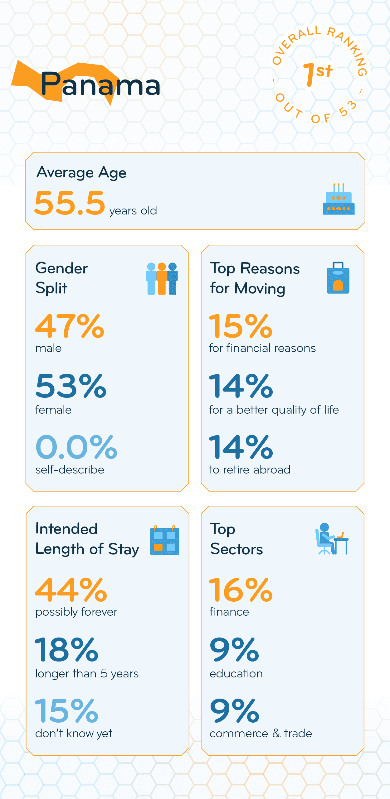 Close to a third of respondents (32%) are already retired (vs. 11% globally). But even if you have to work, there are worst places to be than Panama: the country ranks 12th in the Working Abroad Index.