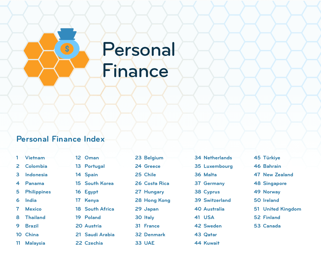 Colombia improved its already good result of 2023 — 7th out of 53 countries — to rank 2nd in the 2024 Personal Finance Index.