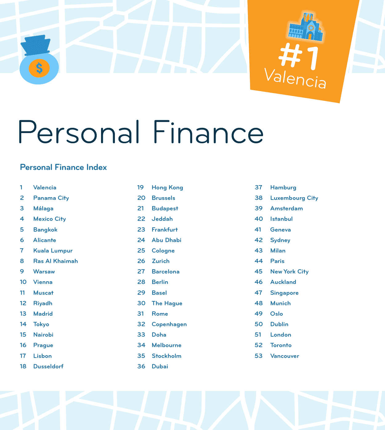 Seven cities in the top 10 were already among the best cities in the 2023 Personal Finance Index. Panama City is new to the ranking in 2024, while Warsaw and Vienna slip into the top 10 after ranking 15th and 16th, respectively, in 2023.