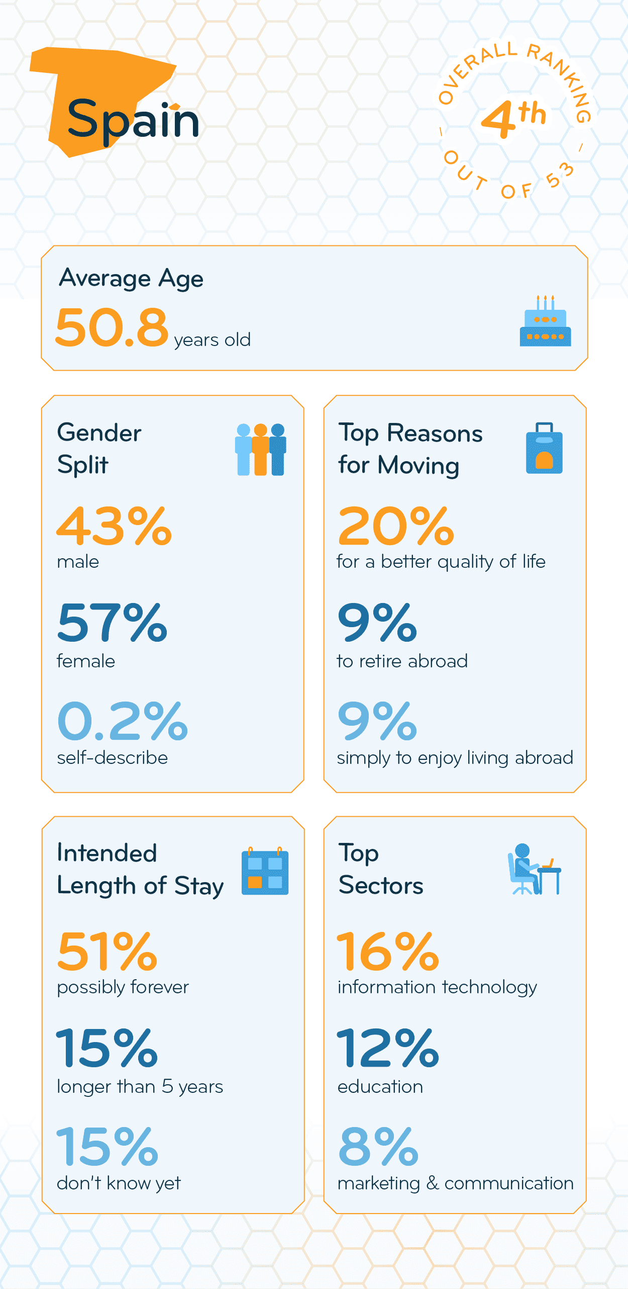 However, Spain ranks 29th for Admins Topics, as factors such as dealing with local bureaucracy (31st) and obtaining a visa (34th) can be challenging.